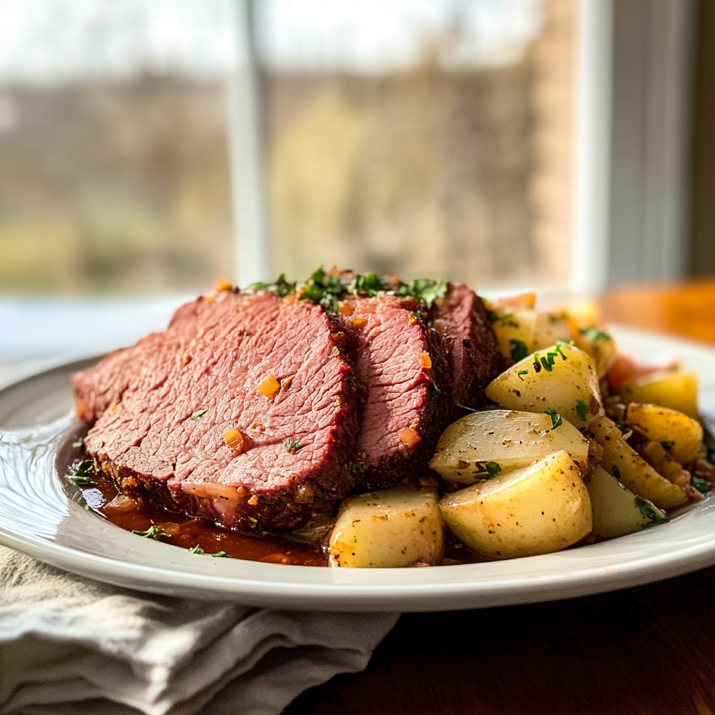 Pro Tip: Cook the brisket a day ahead, refrigerate overnight, then slice and reheat gently in broth for a perfect texture.