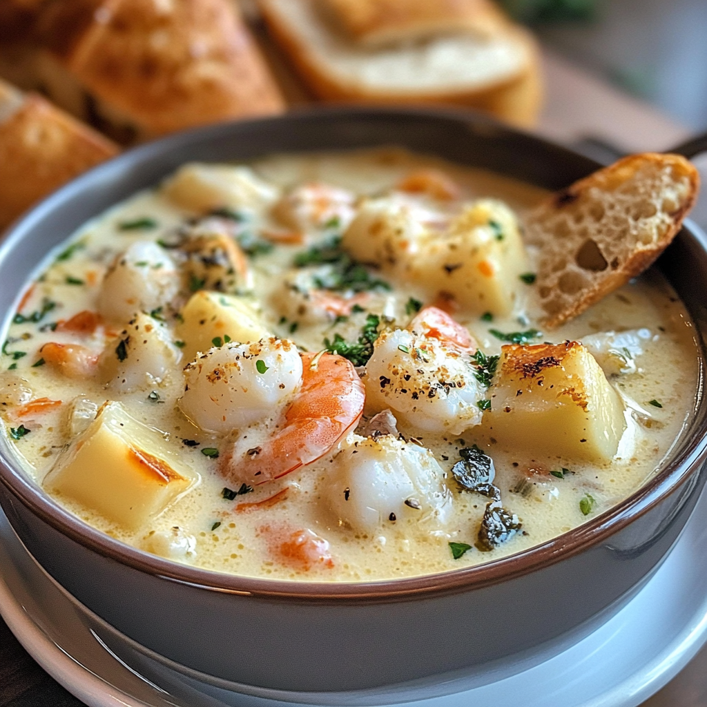 Whether you choose to make a classic version, a spicy variation, or a dairy-free alternative, this seafood chowder will quickly become a favorite in your cooking repertoire. Serve it with a side of crusty bread for dipping, and you have a complete, satisfying meal that’s perfect for any occasion.